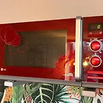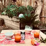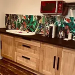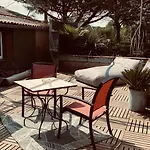 Гости могут приготовить еду на оборудованной кухне или пообедать в обеденной зоне на открытом воздухе. На кухне также есть электрочайник, холодильник и кухонная утварь.