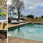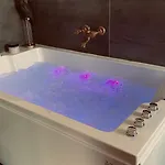 С террасы открывается вид на сад. В ванной комнате также есть отдельный туалет, гидромассажная ванна и душ. Для удобства гостей предусмотрены фен.